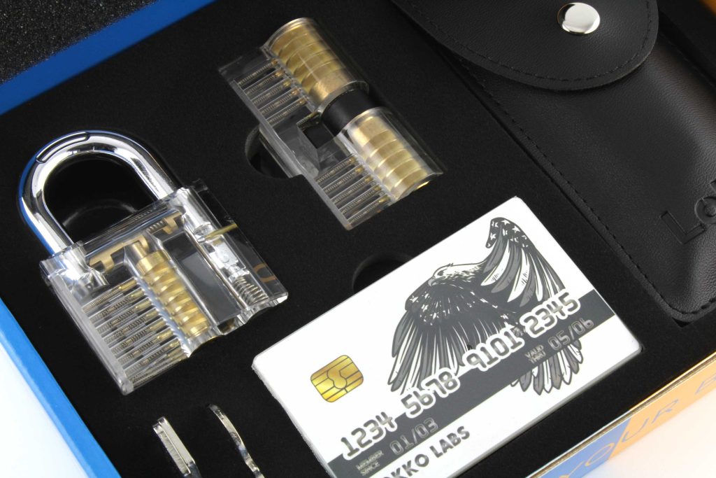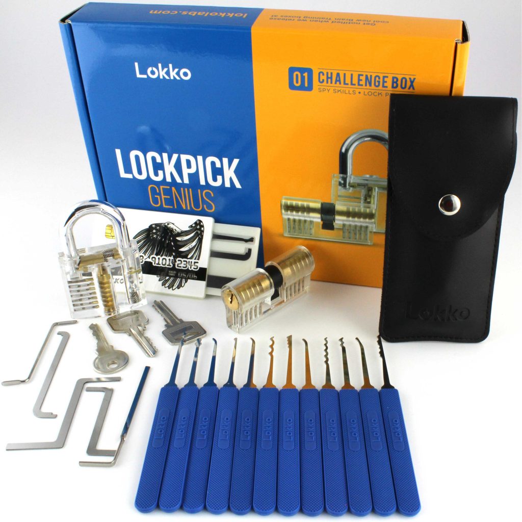 Picks, tension tools, practice locks, instruction book, and progressive exercises. One box. Complete system. Start picking locks the same day your Lokko set arrives.